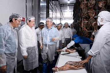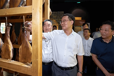 8月22日,金華市委書(shū)記朱重烈專程赴金字火腿公司調(diào)研金華火腿產(chǎn)業(yè)振興工作。朱書(shū)記在公司領(lǐng)導(dǎo)周?chē)?guó)華、馬曉鐘、吳月肖陪同下,走進(jìn)火腿文化展示館和產(chǎn)品展廳。